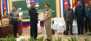 ឧត្តរមានជ័យ÷នៅរសៀលថ្ងៃទី១៤ ខែវិច្ឆិកា ឆ្នាំ២០២៥នេះ ឯកឧត្តមកិត្តិសង្គហបណ្ឌិត ទេសរដ្ឋមន្ត្រី គន់ គីម អនុប្រធាន និងជាអគ្គលេខាធិការ សមាគម អតីតយុទ្ធជន និងនិវត្តជនកម្ពុជា បានអញ្ជើញជាអធិបតីភាពក្នុងពិធីប្រកាសទទួលស្គាល់សមាសភាព ប្រធាន អនុប្រធាន និងសមាជិកគណៈកម្មាធិការសមាគមអតីតយុទ្ធជននិងនិវត្តជនកម្ពុជាខេត្តឧត្ដរមានជ័យ ដែលពិធីនេះប្រព្រឹត្តធ្វើឡើងនៅសាលប្រជុំសាលាខេត្ត ដោយមានភាពចូលរួមជាង២០០នាក់ផងដែរ។