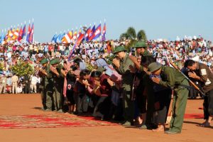 អំពីបញ្ហាផ្ទៃក្នុង របបប៉ុលពត-អៀង សារី បានបង្កើត «រដ្ឋកម្ពុជាប្រជាធិបតេយ្យ» ដោយបង្កើតគំរូកុម្មុយនិស្តបែបកម្ពុជាដ៏ពិសេស ដោយលុបបំបាត់ទីក្រុង ទីផ្សារ រូបិយប័ណ្ណ សាសនា សាលារៀន និងវប្បធម៌ជាតិ ការផ្លាស់ទីលំនៅប្រជាជនទីក្រុងទៅតំបន់ជនបទ និងបង្ខំពួកគេឲ្យធ្វើការងារធ្ងន់នៅក្នុង «ឃុំ» និងការប្រើប្រាស់វិធីសាស្ត្រព្រៃផ្សៃដើម្បីលុបបំបាត់អ្នកដែលប្រឆាំងនឹងពួកគេ។ ក្នុងរយៈពេលត្រឹមតែ ៣ ឆ្នាំ ៨ ខែ និង ២០ ថ្ងៃ ពួកគេបានសម្លាប់ប្រជាជនកម្ពុជាស្លូតត្រង់ជាង ៣ លាននាក់ បានបោសសម្អាត និងសម្លាប់សមាជិកបក្ស និងមន្ត្រីយោធាជាច្រើន…